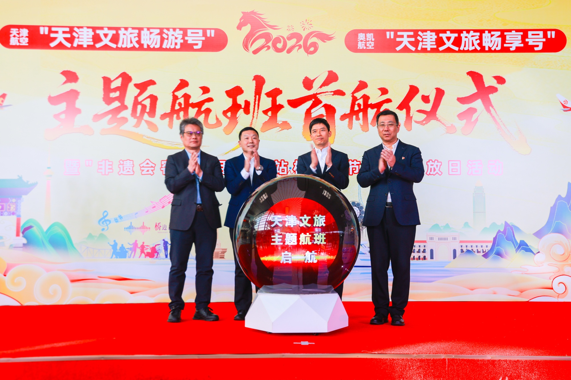 2月6日,“天津文旅畅游号”“天津文旅畅享号”主题航班成功首航仪式暨“非遗会客厅·相约航站楼”春节专场活动举行。