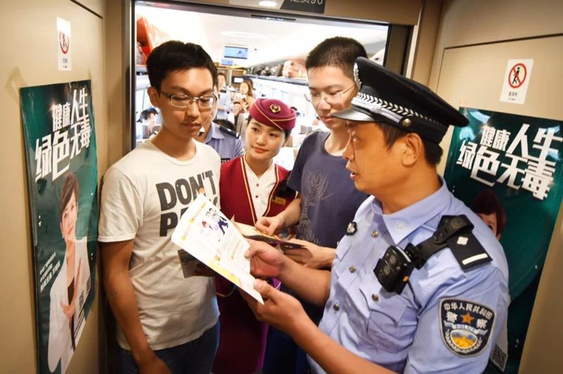 今年禁毒日的主题是“健康人生、绿色无毒”。活动中宣传小分队深入车厢,通过发放宣传手册、有奖竞猜、现场讲解等方式,广泛宣传《禁毒法》,向广大乘客宣传毒品知识。“大家乘车时一定要警惕陌生人给的食物,尤其是套近乎、拉关系的水和烟,这往往是贩毒、售毒不法人员引诱他人吸毒的惯用伎俩……”乘务一大队大队长刘刚用真实案例以案说法,对毒品的概念、种类、危害作了详细讲解,使广大旅客认识到毒品对个人、家庭、社会的危害,增强了广大旅客认识毒品、防范毒品、拒绝毒品的意识和能力。