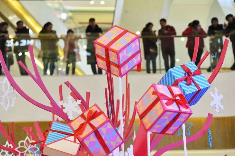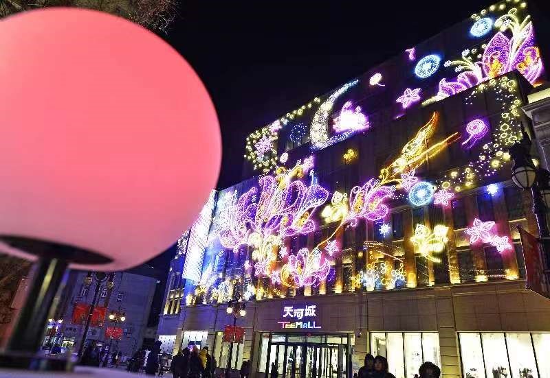 刚进入12月,随着新年脚步的临近,天津市各大商场也开始着手“装扮”自己,以年味儿十足、喜气洋洋的“样貌”迎接新年的到来。在天河城商场内巨型的“礼屋”出现在醒目大厅,而室外的灯光秀更是美轮美奂,给津城增添了节日的惊艳。