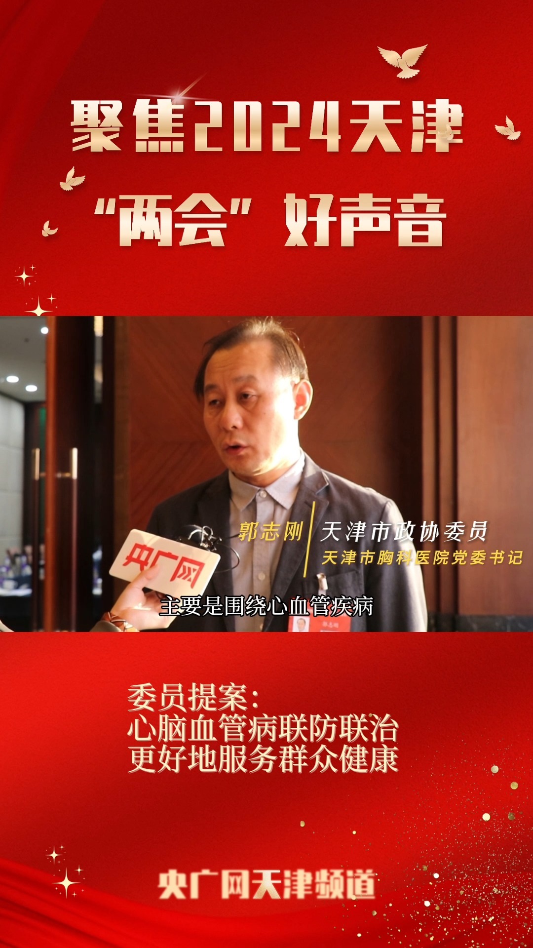 【天津“两会”好声音】郭志刚:心脑血管病联防联治 更好地服务群众健康