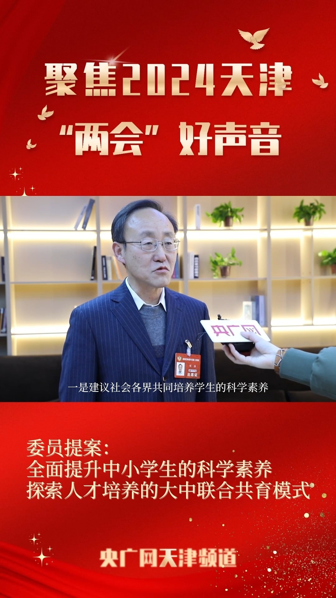 【天津“两会”好声音】刘浩:全面提升中小学生科学素养 探索大中联合共育模式