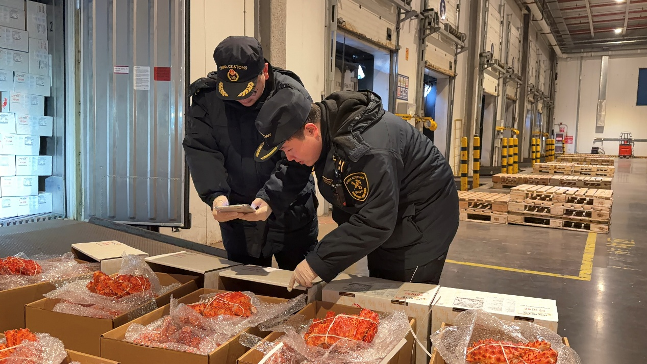 日前,在天津海关所属天津新港海关的监管下,来自智利的10.2吨熟冻帝王蟹顺利抵达天津口岸。