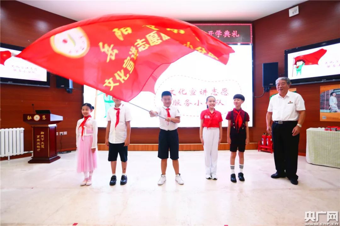 8月26日,天津市岳阳道小学举行了2019-2020学年度第一学期开学典礼,主题为"踏寻红色印迹,展望绿色明天",天津市和平区教育局副局长王鹏出席仪式。学校邀请来了解放军战士进行升旗仪式。