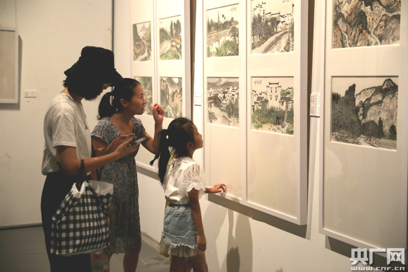 8月18日观众观看美术作品(央广网记者刘阳 摄)
