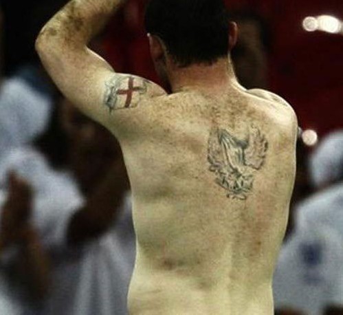 鲁尼虽然阿在球场上很凶悍,可是在生活中,他是一个好父亲,而且也想通过纹身来表达自己的意愿。在他的后背上,纹有一对合十的手,下面则有一对天使之翼,包围着Kai的名字。英国媒体披露,这是鲁尼献给儿子凯伊的礼物,寓意是为他祈祷祈福。此外,鲁尼的纹身带有大量爱国主义色彩,其中左臂上的圣乔治旗最具代表意义。