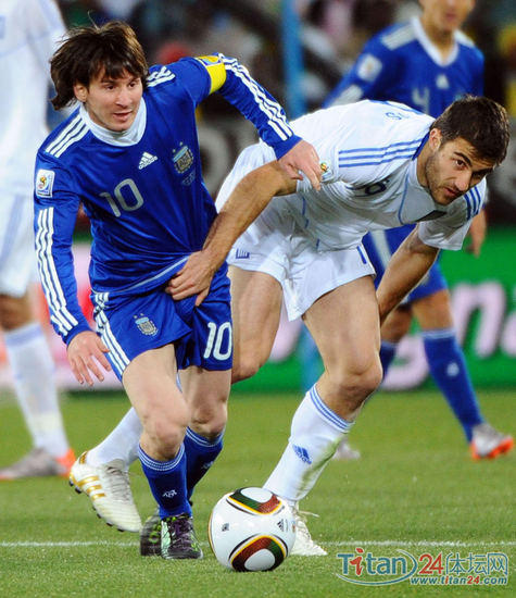 6月24日,是梅西的23岁生日,马拉多纳在今晨这场比赛中特意将队长袖标送给爱徒,阿根廷在保罗瓜尼的莫卡巴球场2比0击败希腊队。梅西屡创杀机遗憾未破门,首次任队长获评全场最佳。