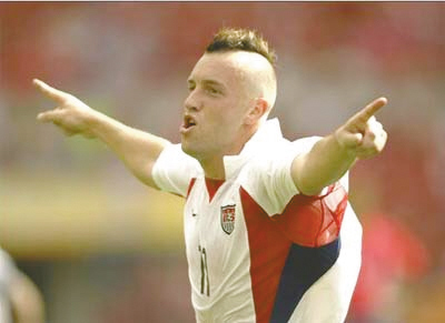 为了像小贝的莫西干头致敬,美国队前锋球员克林特·马西斯将脑袋四周剃得光光,脑门正中留下了少许冲天的头发。
