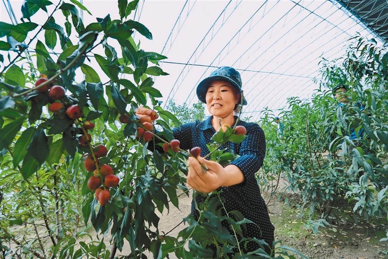 墨竹工卡县工卡镇苗木花卉基地技术人员正在采摘水果。通讯员洛桑克珠 记者唐斌 摄