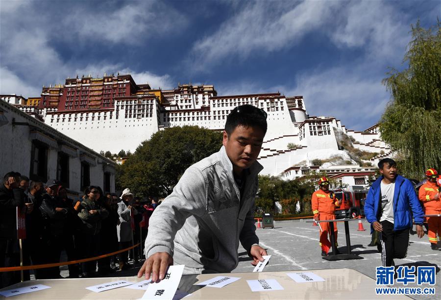 11月9日,布达拉宫工作人员选择初期火灾处置程序答案。 新华社记者 觉果 摄