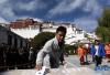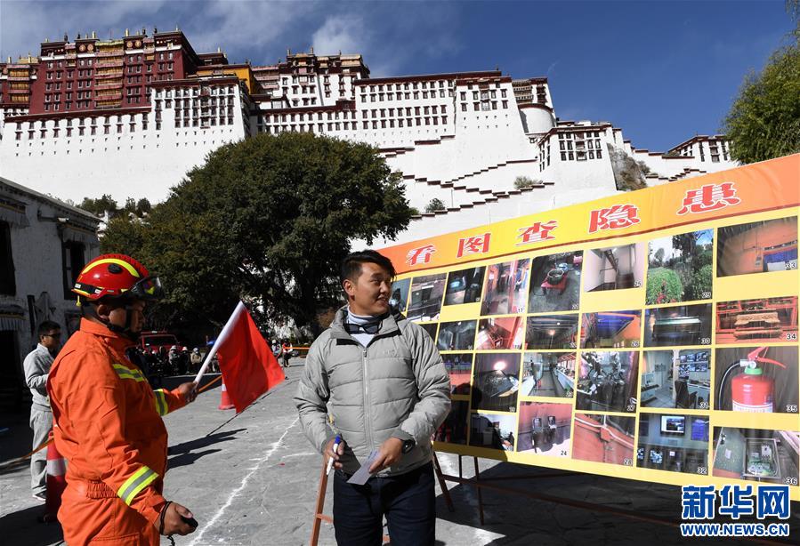 11月9日,布达拉宫工作人员看图回答火灾隐患。新华社记者 觉果 摄