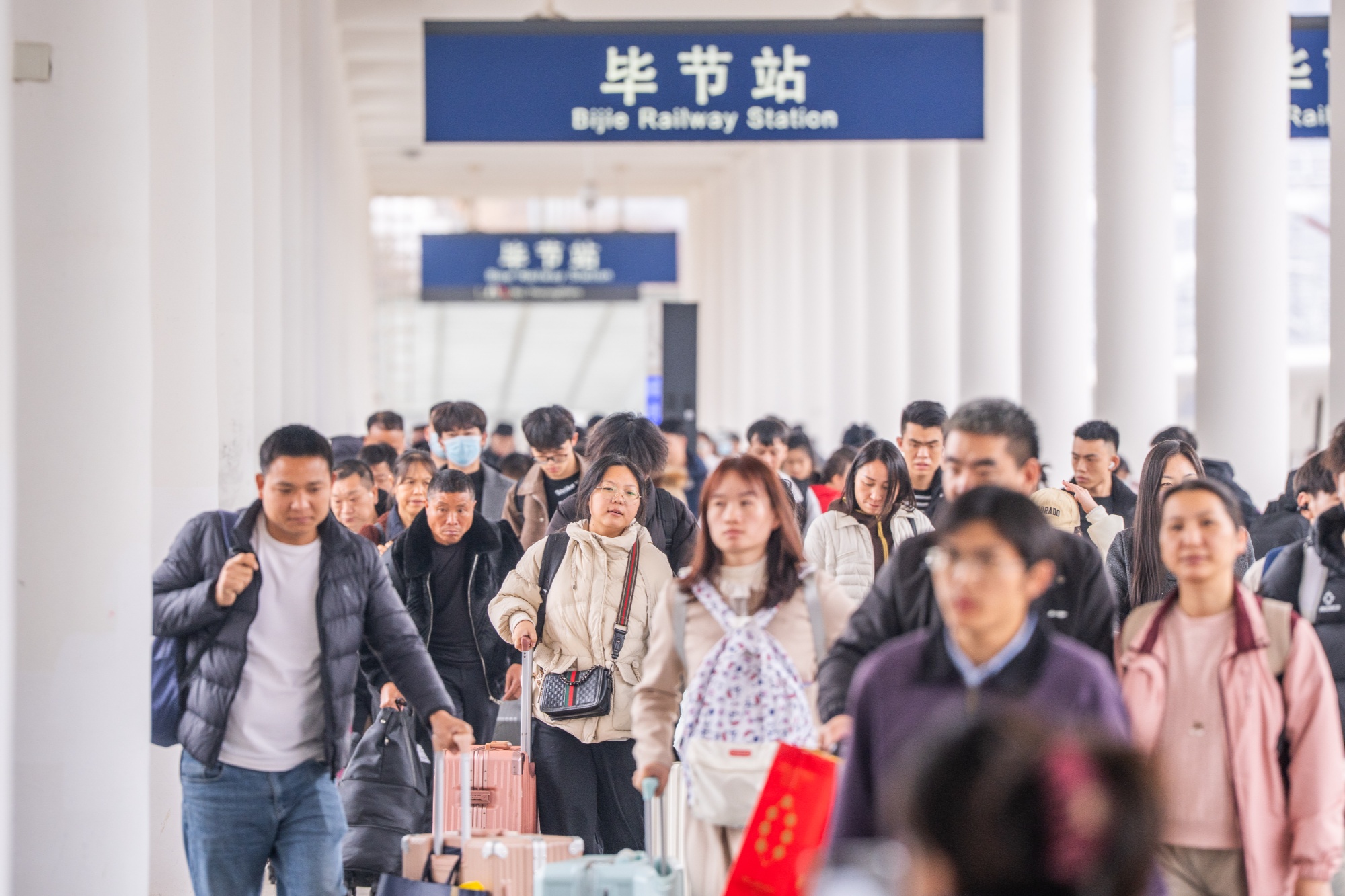 2月12日16时07分,随着D1808次广州南至毕节高铁专列停靠毕节站,1126名毕节籍在粤务工人员平安到家。