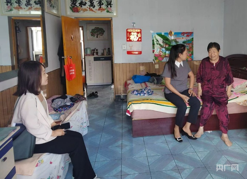 陪独居老人唠家常(央广网发 海伦市委宣传部供图)