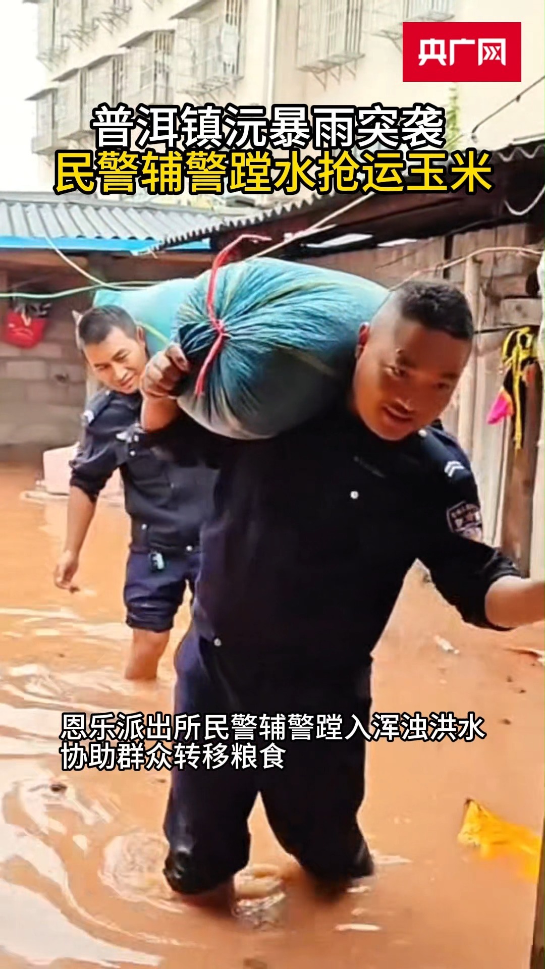 暴雨突袭普洱镇沅,民警辅警蹚水转运400公斤玉米。