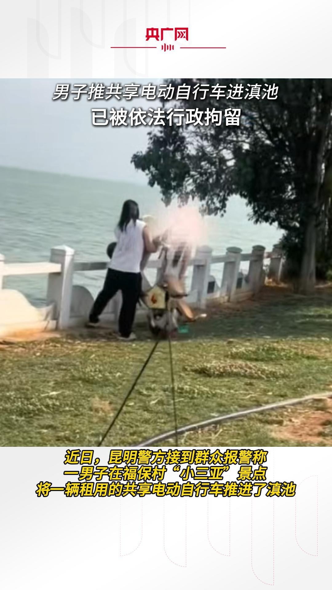 男子推共享电动自行车进滇池 已被依法行政拘留