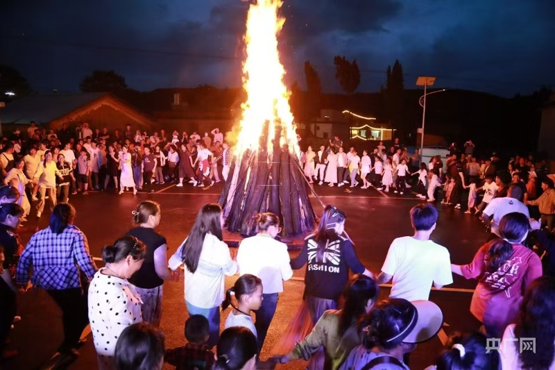 游客和村民共度火把节(央广网发 马龙区委宣传部供图)