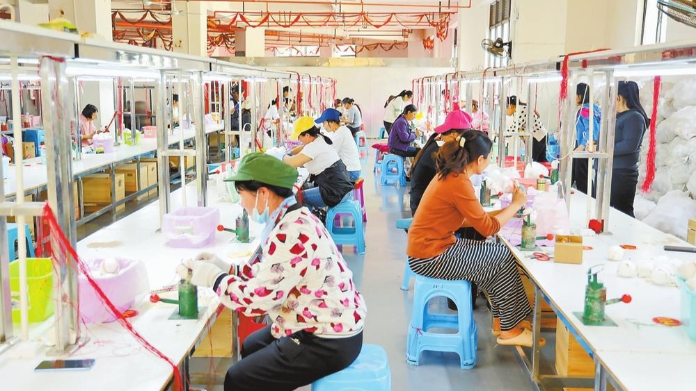 机器的嗡鸣声与针线穿梭的细响交织在一起,奏响了热火朝天的生产乐章。