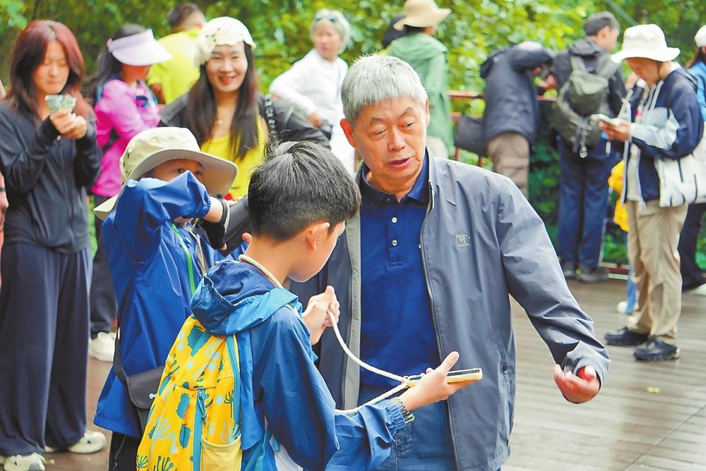 维西傈僳族自治县塔城镇静卧于白马雪山下,气候宜人,物产丰饶,更因滇金丝猴栖息而独具魅力。上午9时,滇金丝猴国家公园内人头攒动,观猴台上一派热闹景象:有人举着相机屏息凝神,有人因近距离见到猴群而发出阵阵轻呼。“迪庆是一个集文化多样性、生物多样性、农作物多样性、景观多样性于一体的地方,非常值得深度探访。”人群之中,灵长类动物研究专家龙勇诚教授为研学少年们讲述他与“雪山精灵”的不解之缘,“现在大家能近距离看到滇金丝猴,是保护区工作人员、科研团队以及社会各界共同呵护的成果。”