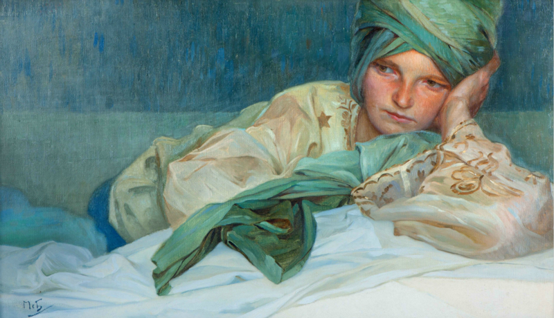 1883至1889这六年,对年轻的穆夏而言是一段惬意时光。在Khuen-Belassi伯爵的资助下,他先后到慕尼黑和巴黎学习绘画。然而1889年,伯爵突然中断了对他的投资,穆夏便由一个充满闲情逸致的文艺青年,沦落到每天要为生计犯愁。那时的他已经快30岁了,身无分文,似乎也没什么前景。就像每一个为嘴奔忙的落魄书生那样,穆夏接了大量为书籍和杂志画插图的工作,报酬低廉到难以维持生计。这样穷困潦倒的日子过足五年。