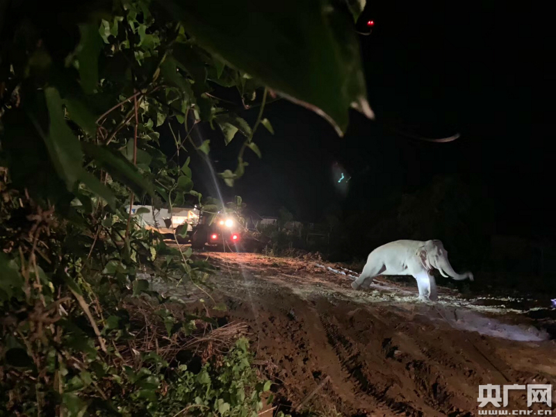 当晚8时,无人机监测到“纳文”来到集镇边缘,在景讷中学距离教学楼100米开外的空阔地上活动,且周边活动的野象群远在1公里以外。
