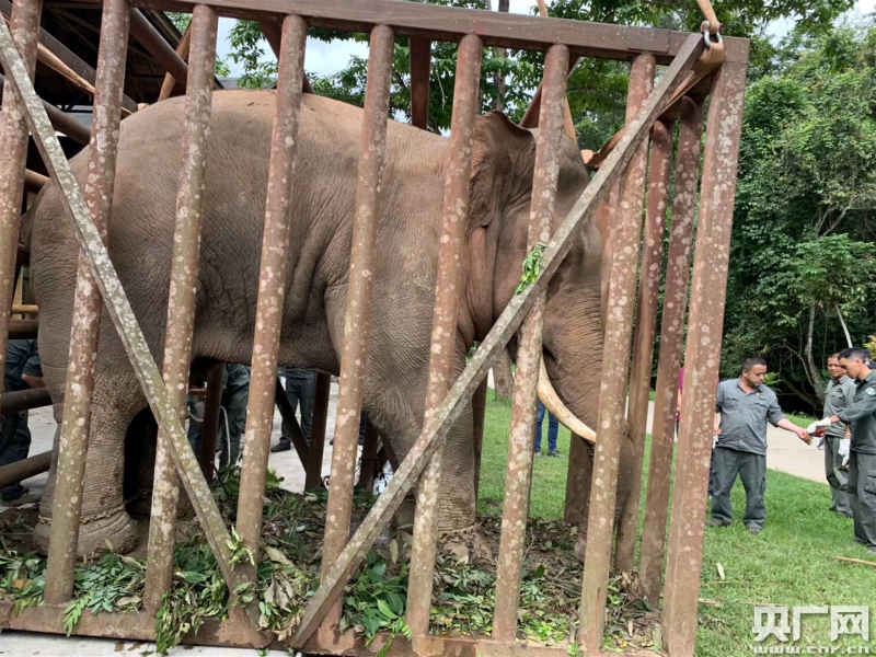7月9日凌晨5时,“纳文”被装进铁笼吊上了卡车。早上8时,“纳文”被运抵野象谷,安置在了中国亚洲象种源繁育基地及救助中心内。