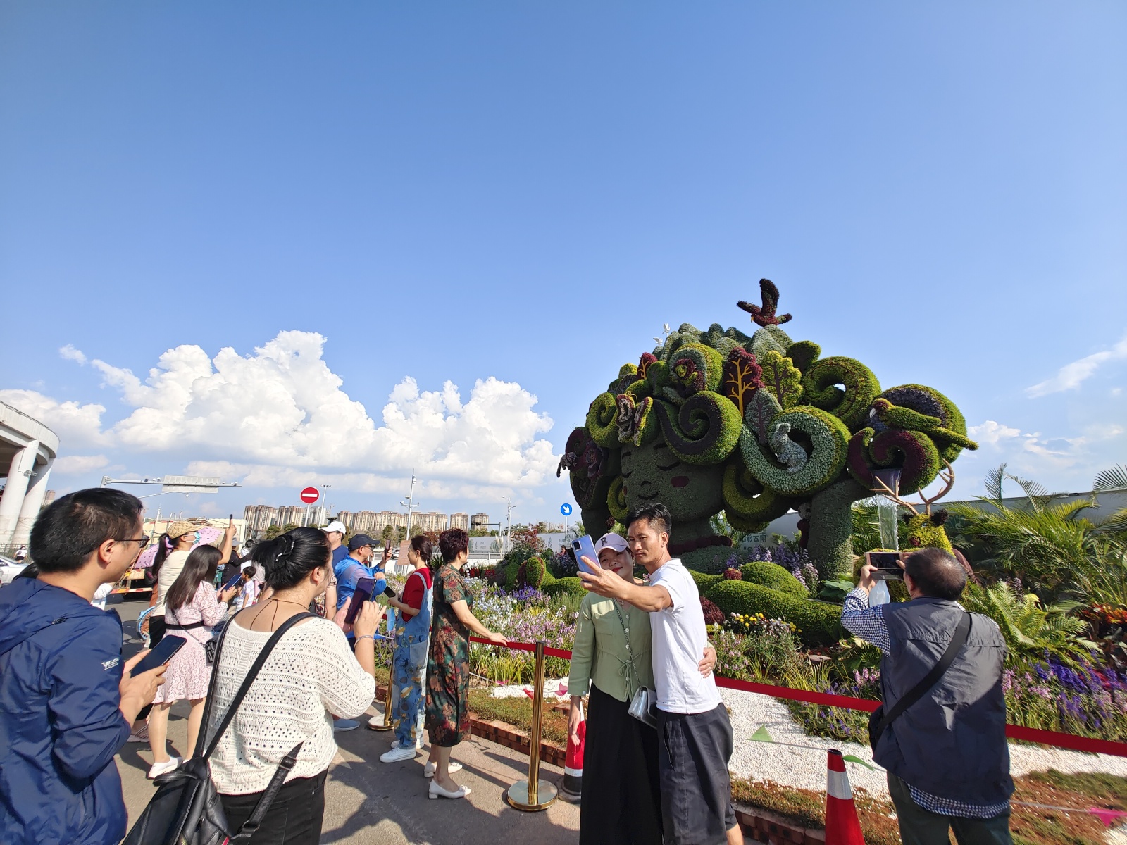 央广网昆明10月3日消息(记者杨菡)COP15第一阶段会议即将到来,市民利用国庆假期纷纷来到滇池国际会展中心打卡参观。在滇池国际会展中心,记者看到,前来拍照打卡的市民络绎不绝,还有不少省外游客。有的游客表示,要把整个昆明的立体花坛全部合影打卡。一对新婚夫妻正抓紧时间和立体花坛合影。记者还看到,工作人员正在为升旗做测试准备。
