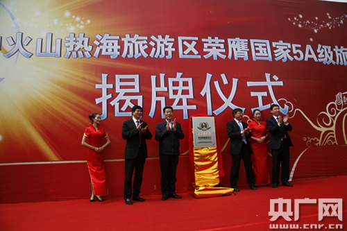 5A揭牌仪式上,腾冲火山热海公司总经理孙延安代表公司致欢迎辞,保山市旅发委主任温仕红主任宣读了《全国旅游资源规划开发质量评定委员会公告(2016年第1号)》文件,保山市政协主席董礼书,腾冲市人民政府市长庄宇以及云南机场集团党委书记、董事长周凯发表重要讲话,腾冲市各相关职能部门、旅游企业、旅行社等60余家单位参加了揭牌仪式。