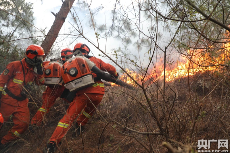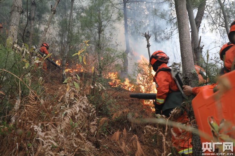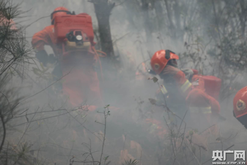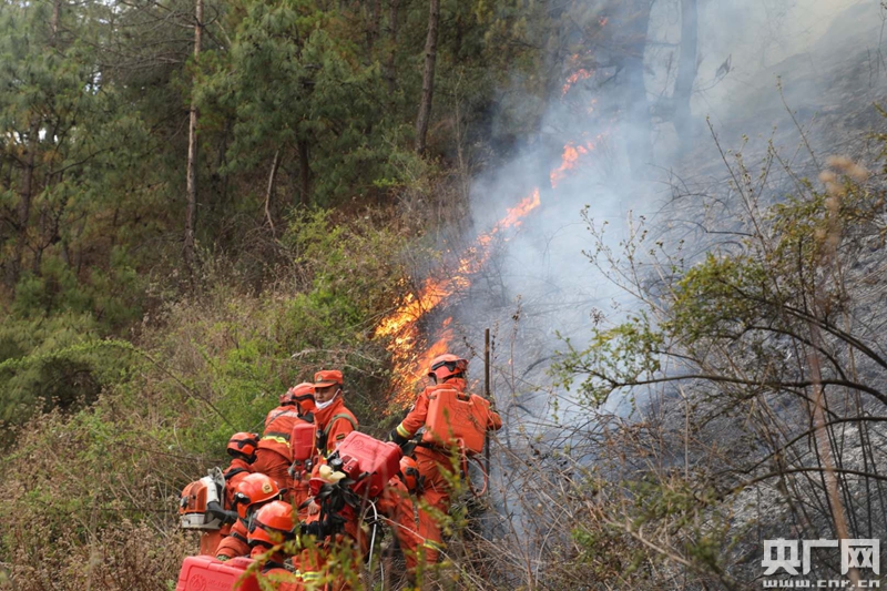 由于火场部分区域极其陡峭,云南松在风助火势之下多次形成上山树冠火,官兵无法靠近。当前政府已组织森警、内卫、消防、民兵、专业扑火队等力量投入灭火。截止23时00分,火场未得到有效控制,官兵正在连夜扑救中。