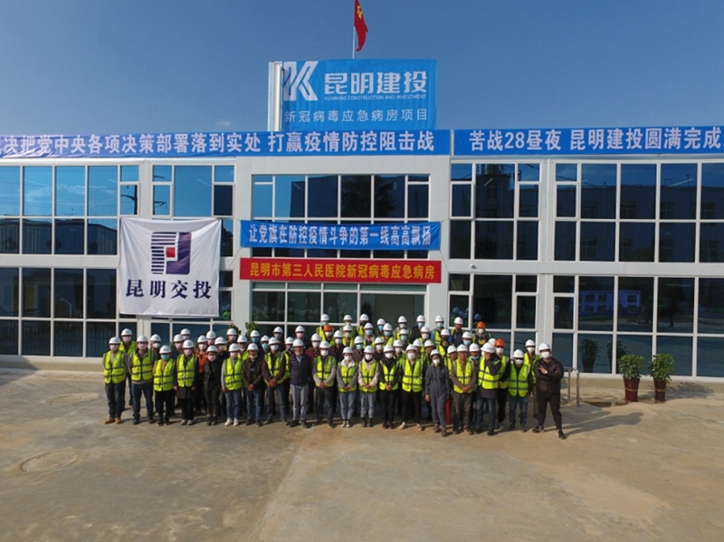 据了解,该应急病房由昆明交投公司下属昆明建投建设工程集团有限公司(以下简称“昆明建投”)承建。1月31日,在接到昆明市委市政府参建项目通知后,昆明交投公司立即组织昆明建投成立项目指挥部,由昆明建投副总经理干彬任指挥长、总工程师王勇担任项目经理。项目充分借鉴武汉火神山医院建设经验,并结合实地情况进行优化,连夜规划、设计并统筹各方优质资源、抽调精干力量,迅速于当晚组织相关技术管理人员、材料、机械进场。