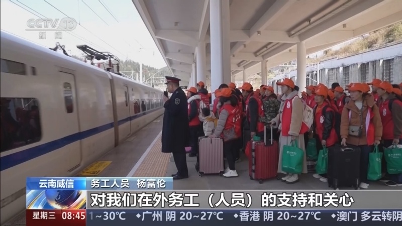 云南威信:1200多名务工人员乘免费专列返岗复工。
