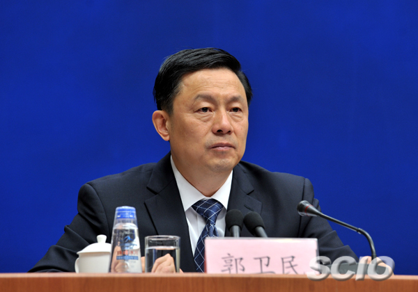 国务院新闻办公室副主任、新闻发言人郭卫民主持本次新闻发布会(刘健 摄)