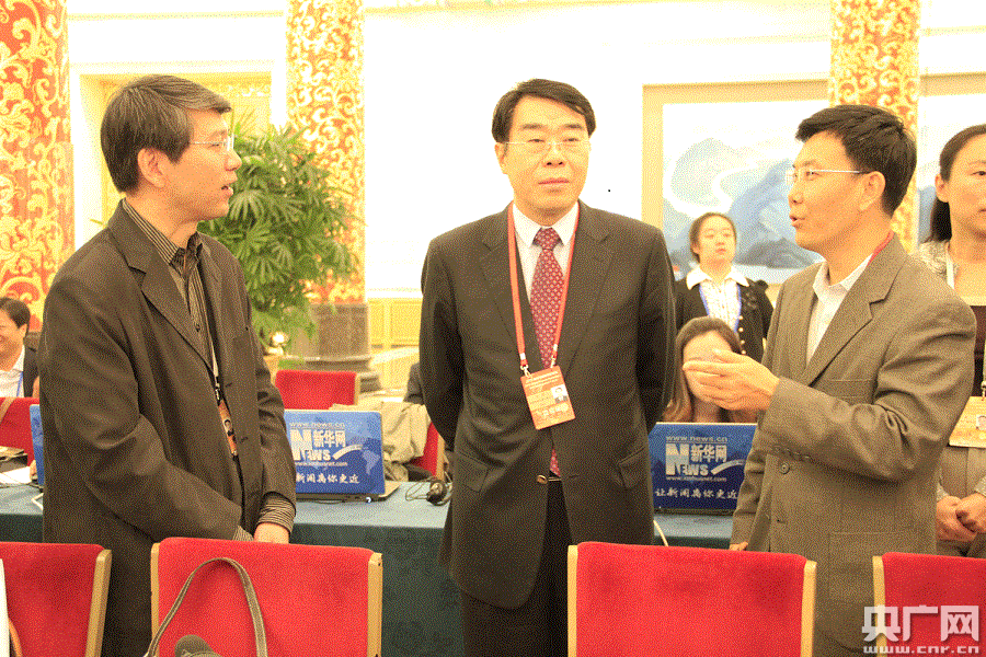 国家新闻出版广电总局副局长田进视察中央人民广播电台前方直播席。(央广网记者 侯力新 摄)