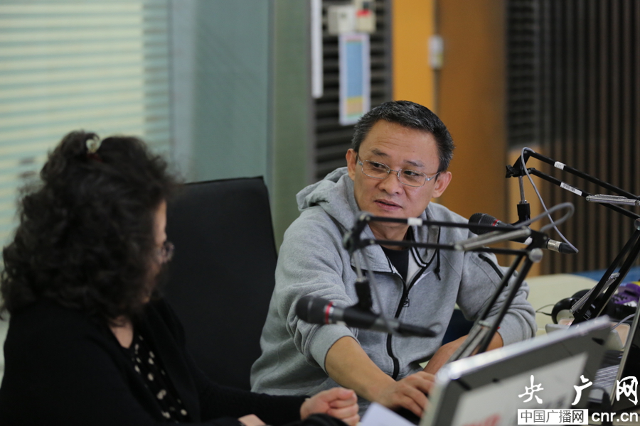 煤矿文工团著名演员、朗诵艺术家徐涛与中央人民广播电台著名播音闻琪带听众欣赏《放歌亲情——感悟孝经咏诵会》(央广网发 张曈摄)
