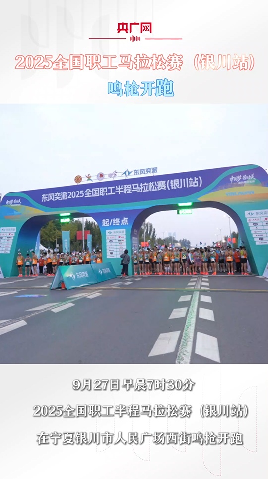 9月27日上午7时30分,2025全国职工半程马拉松赛(银川站)在宁夏银川市人民广场西街鸣枪开跑。