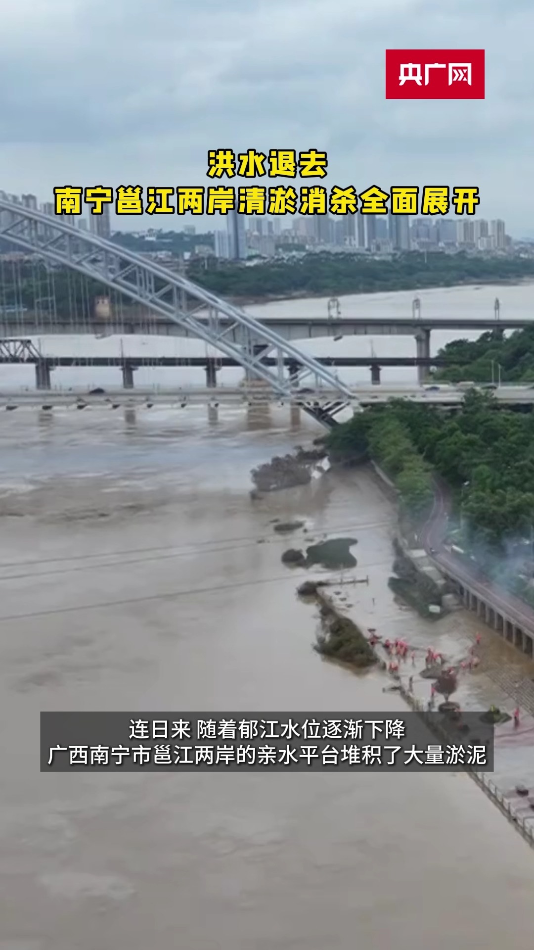 洪水退去 广西南宁邕江两岸清淤消杀全面展开