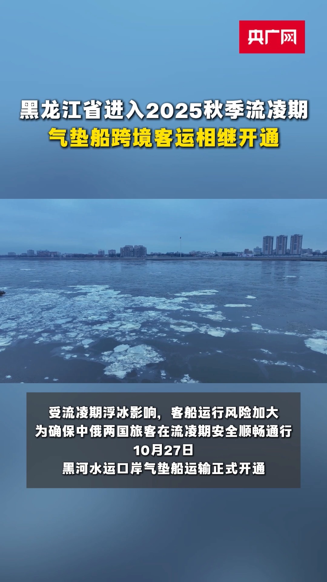 黑龙江省进入2025秋季流凌期,气垫船跨境客运相继开通。