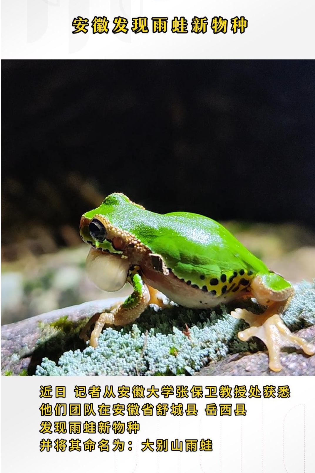 安徽发现雨蛙新物种