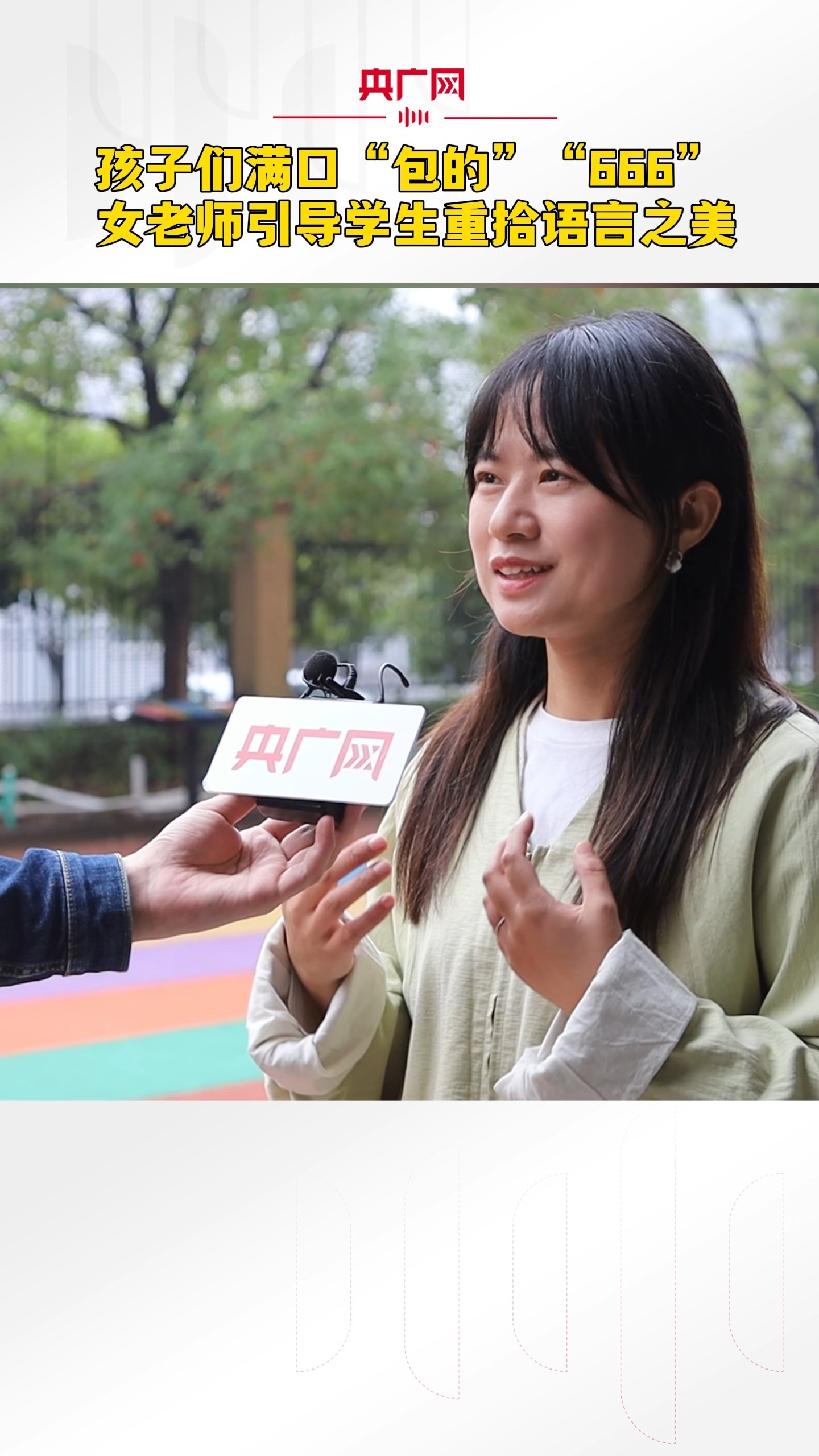 近日,江西九江双语实验学校女老师刘小娟面对学生频繁使用“网络热梗”的现象,提出了自己观点。她向央广网记者表示:“希望我的学生们、孩子们,能够运用语言文字,感受中国文化的美。”