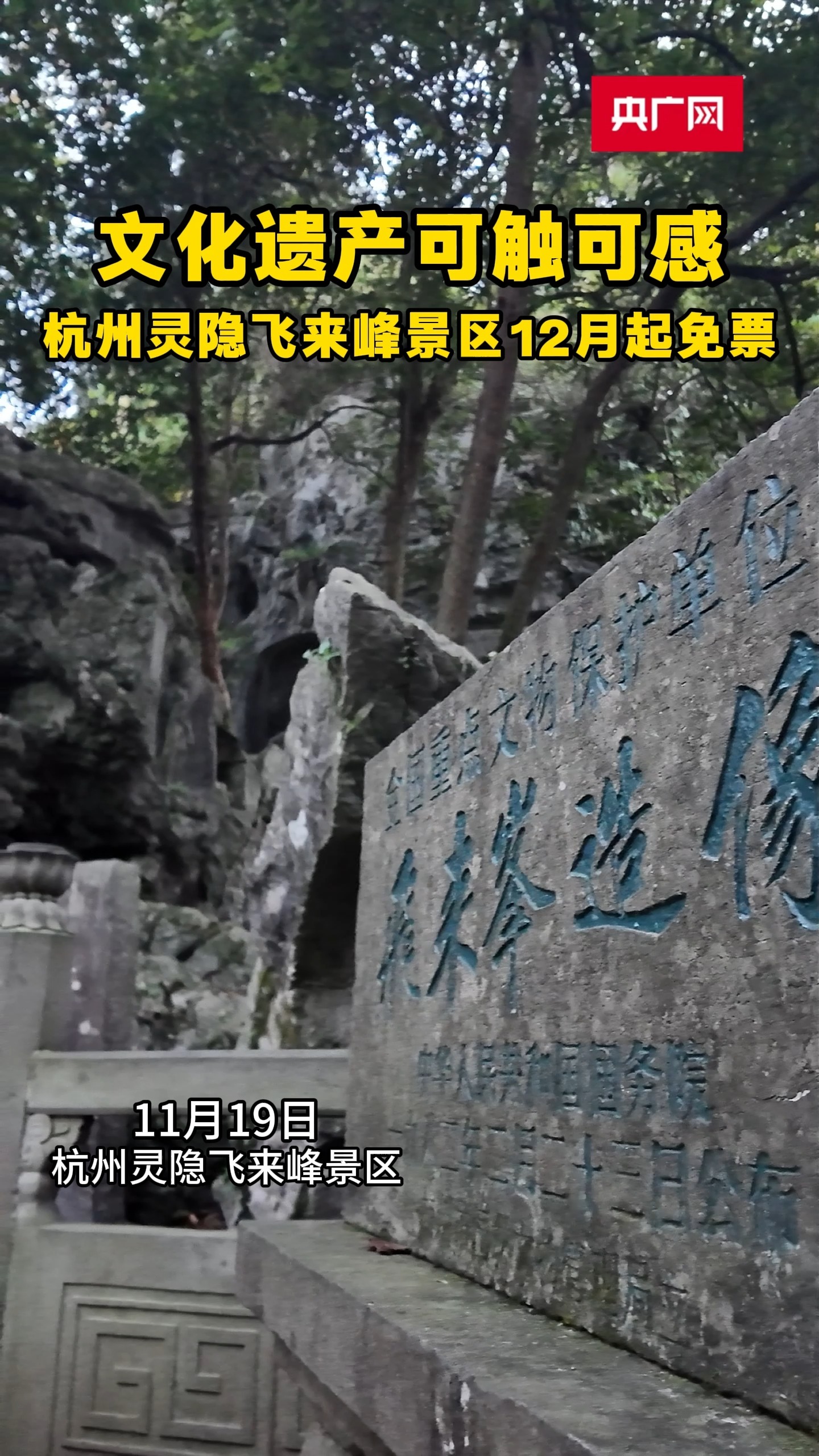 文化遗产可触可感 杭州灵隐飞来峰景区12月起免票