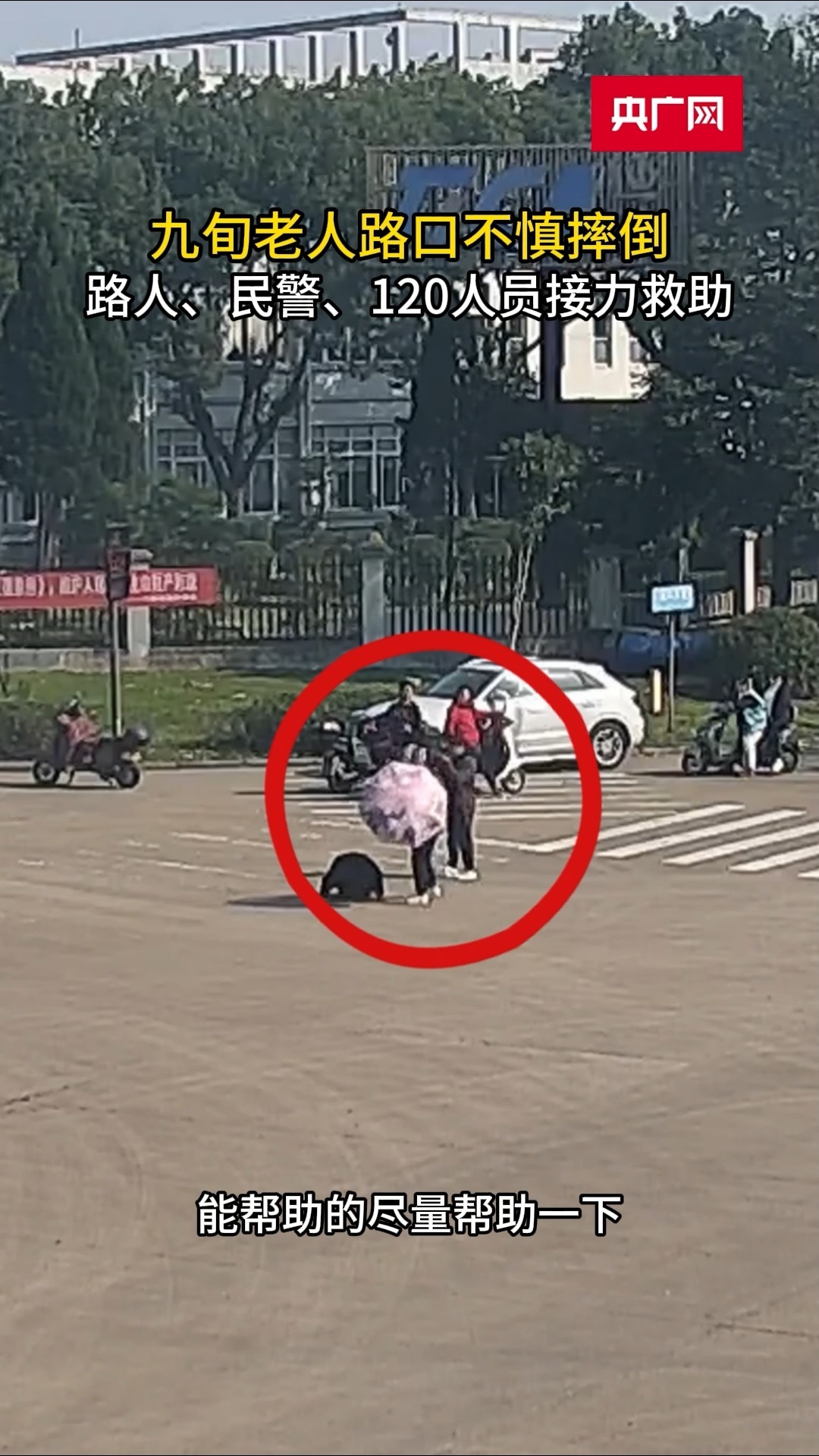 九旬老人路口不慎摔倒 路人、民警、120人员接力救援