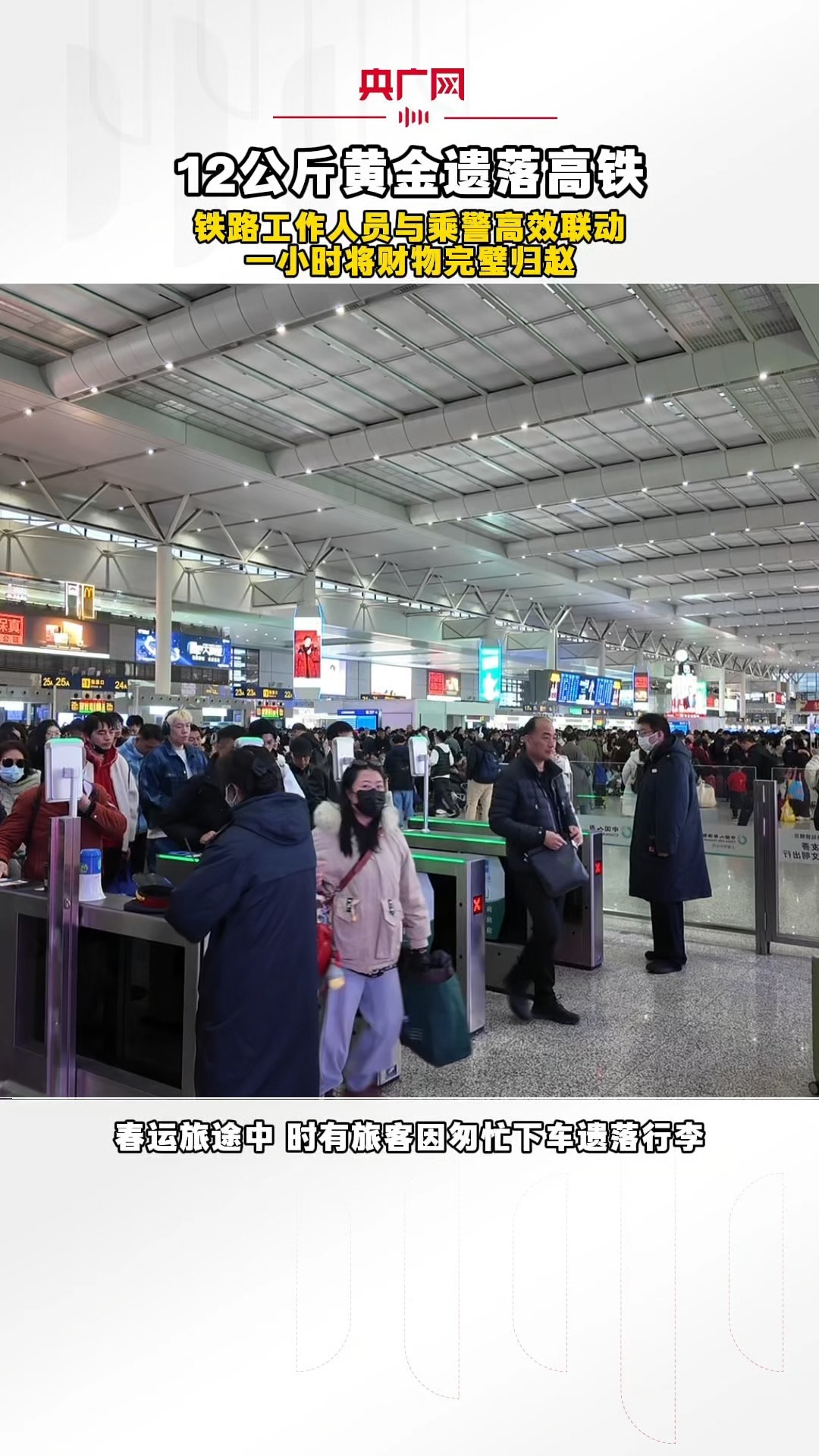 12公斤黄金遗落高铁 一小时后乘警车长将财物完璧归赵