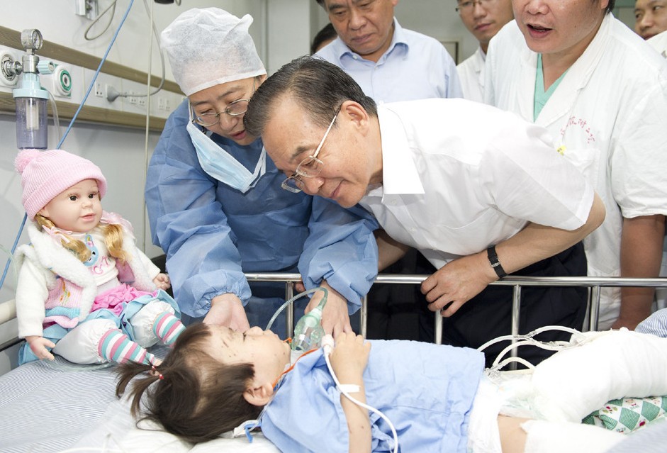 温总理:大家一起来关心孩子 28日上午10时40分,温家宝特地来到温州医学院附属第二医院看望小伊伊。病床上的小伊伊正在沉睡。温家宝俯下身来,仔细端详熟睡的小伊伊。医护人员告诉总理,手术后孩子已经能吃西瓜和流食,生命体征平稳。温家宝听后说,要好好照顾孩子,政府会关心,人民会关心,大家一起来关心。详细