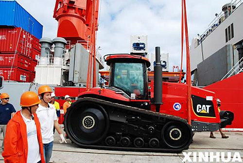 11月29日,在澳大利亚弗里曼特尔码头,一辆雪地车正被吊运到“雪龙”号上。 当日,中国从国外购置的9辆雪地车在澳大利亚弗里曼特尔码头登上“雪龙”号极地科考船。这些雪地车的加入将大大提高此次南极科考的装备水平。 新华社记者 张建松 摄