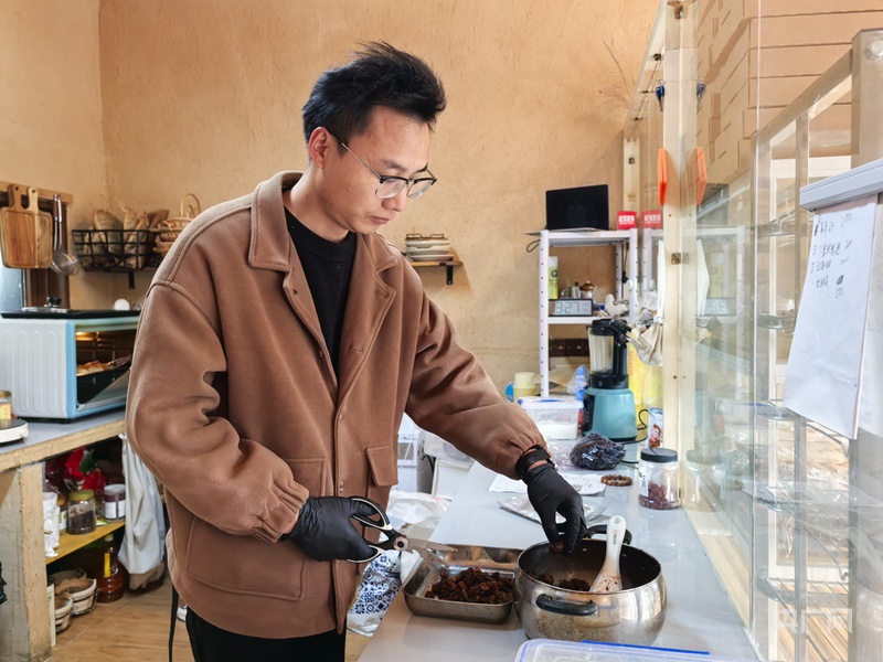 与刘凡的糖水铺子比邻而居的窑烤面包店老板胡自侨,亦是与刘凡志趣相投的年轻人。他去年成家后,选择从省会返乡,与妻子一同钻研古法窑烤技艺。泥炉果木,慢火细焙,这带着乡土气息的醇厚味道,在当地的消费市场悄然走红。