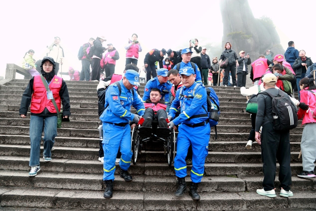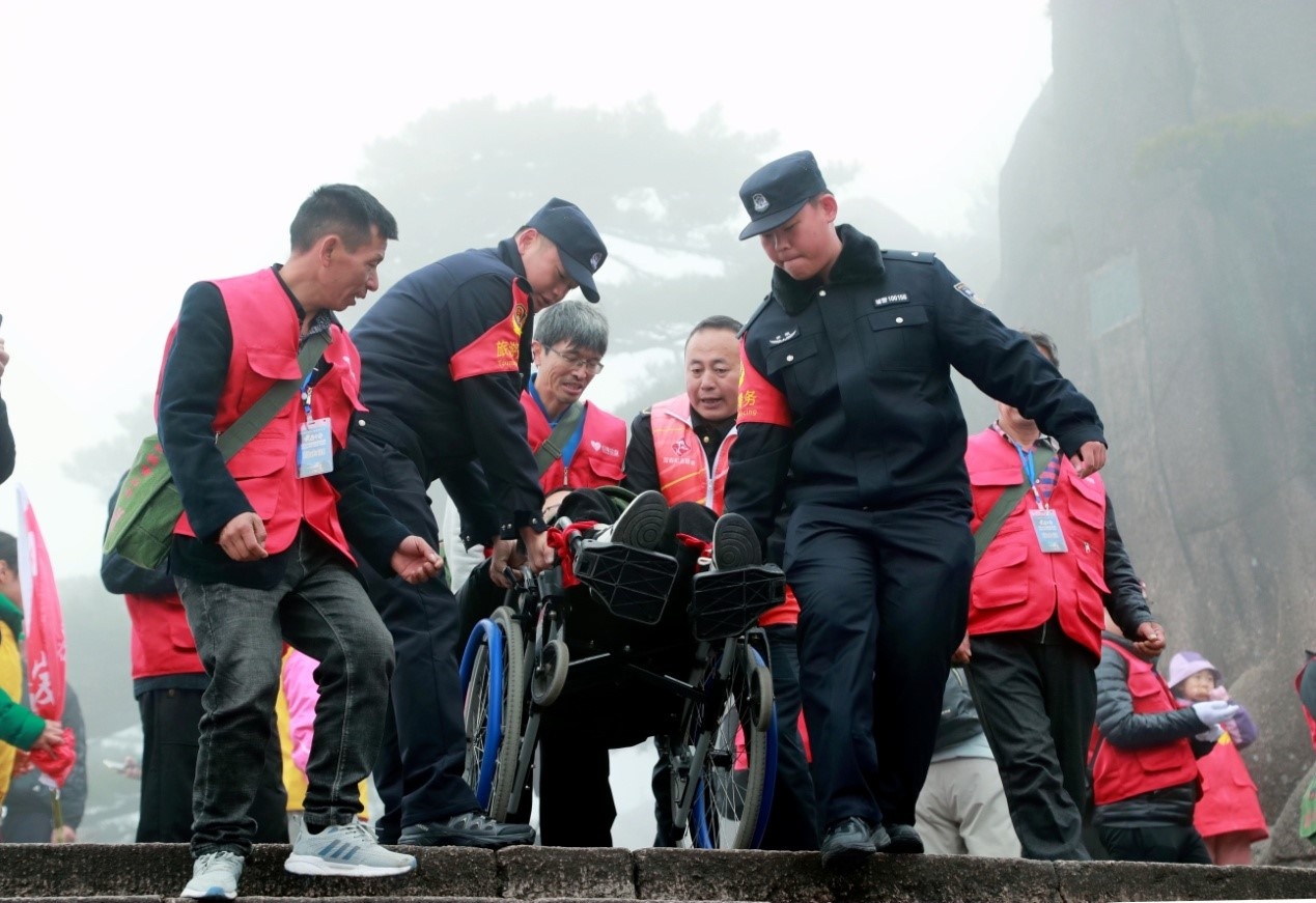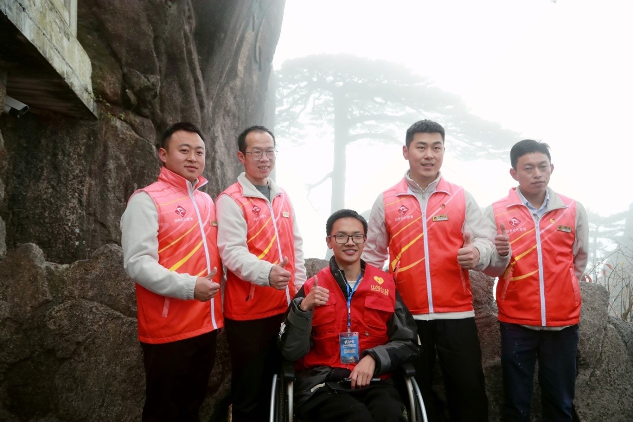 通过这次公益活动,志愿者们让残疾人士成功登上黄山之巅(蔡季安 摄)
