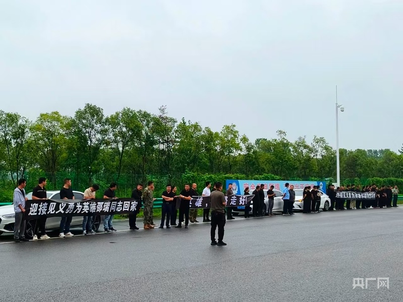 央广网蚌埠9月14日消息(记者 周然 见习记者 刘浩)近日,邵瑞同志的追思会在其家乡安徽省蚌埠市怀远县举行。殡仪馆门前道路两旁站立了很多邵瑞生前亲友,接见义勇为的英雄回家。