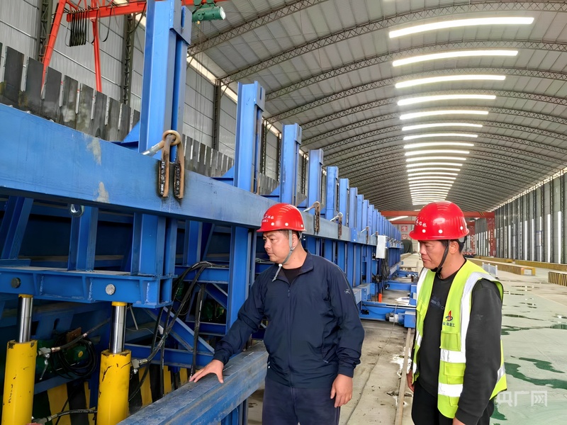熊祖发(左)在检查施工设备(央广网发 安徽建工路桥供图)