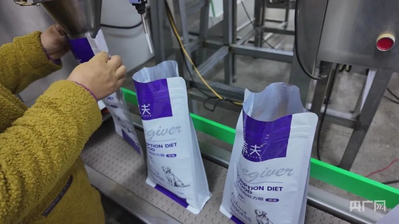 随后,烘焙完成的宠物粮在冷却后,进入包装线,工人们封口、装箱等一系列动作一气呵成,在生产线末端,一箱箱印有不同合作品牌标识的成品整齐码垛,等待发往全国各地。整个过程在高度自动化的环境中完成,极大减少了人工直接接触,确保了产品从生产线到包装袋的卫生与安全。