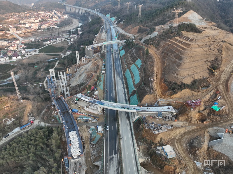G237项目跨跨沪陕高速桥(央广网发 安徽建工路桥供图)