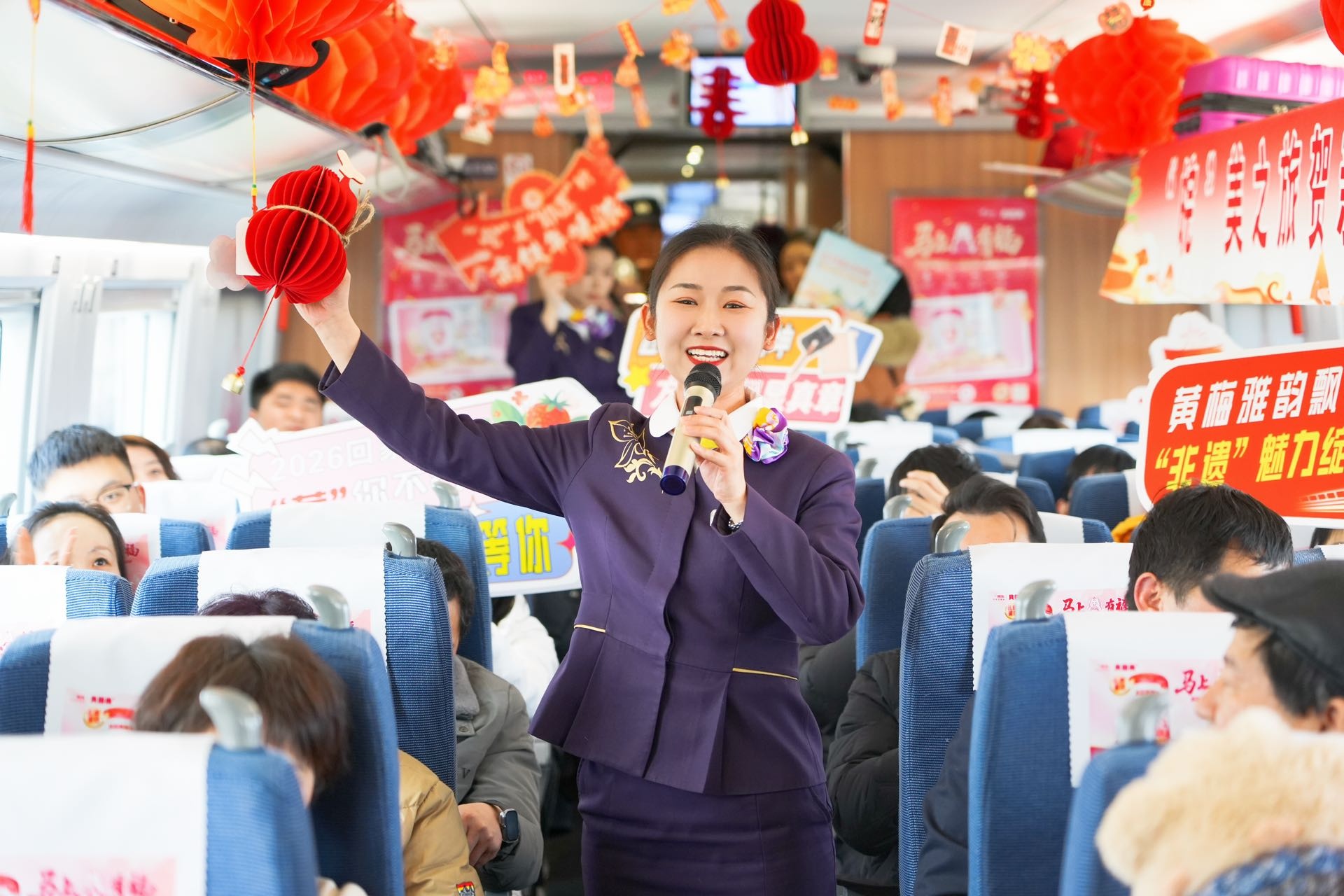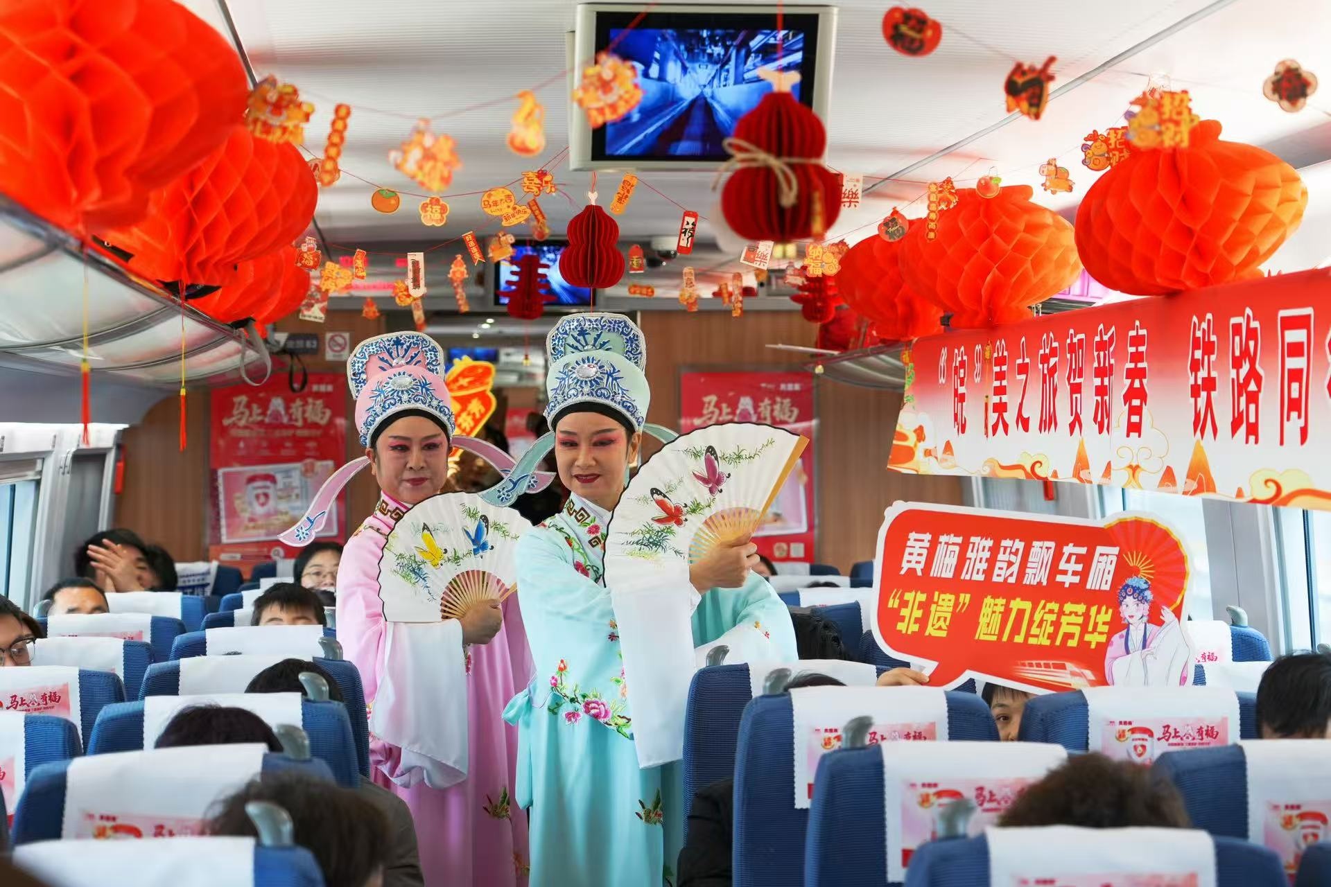 央广网合肥2月3日消息(记者徐鹏 通讯员周晨 王昊)2月2日,随着G8341次列车从合肥南站缓缓驶出,由中国铁路上海局集团有限公司合肥客运段、淮南西站、合肥机务段携手长丰县文化和旅游局共同开展的“皖美之旅贺新春”主题宣传活动正式启幕。本次活动以列车5号车厢为舞台,为返乡乘客精心打造了一场融合非遗文化展演、文旅推介与互动体验的文化盛宴。