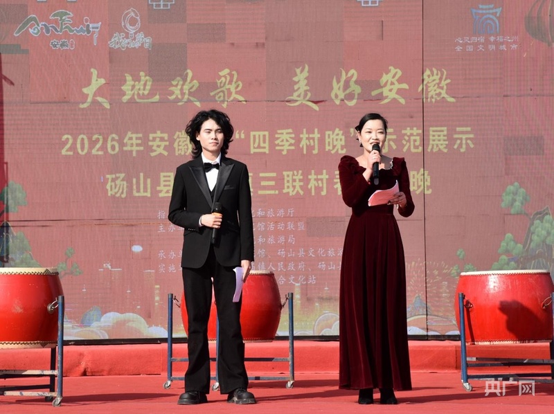 央广网宿州2月16日消息(记者 张琳琳 通讯员 李艳龙)为丰富群众精神文化生活,传承非遗文脉,激活乡村文化活力,2月14日,“大地欢歌美好安徽”2026年安徽省“四季村晚”示范展示演出砀山县玄庙镇三联村春节村晚,在玄庙镇三联村文化广场热闹开演。